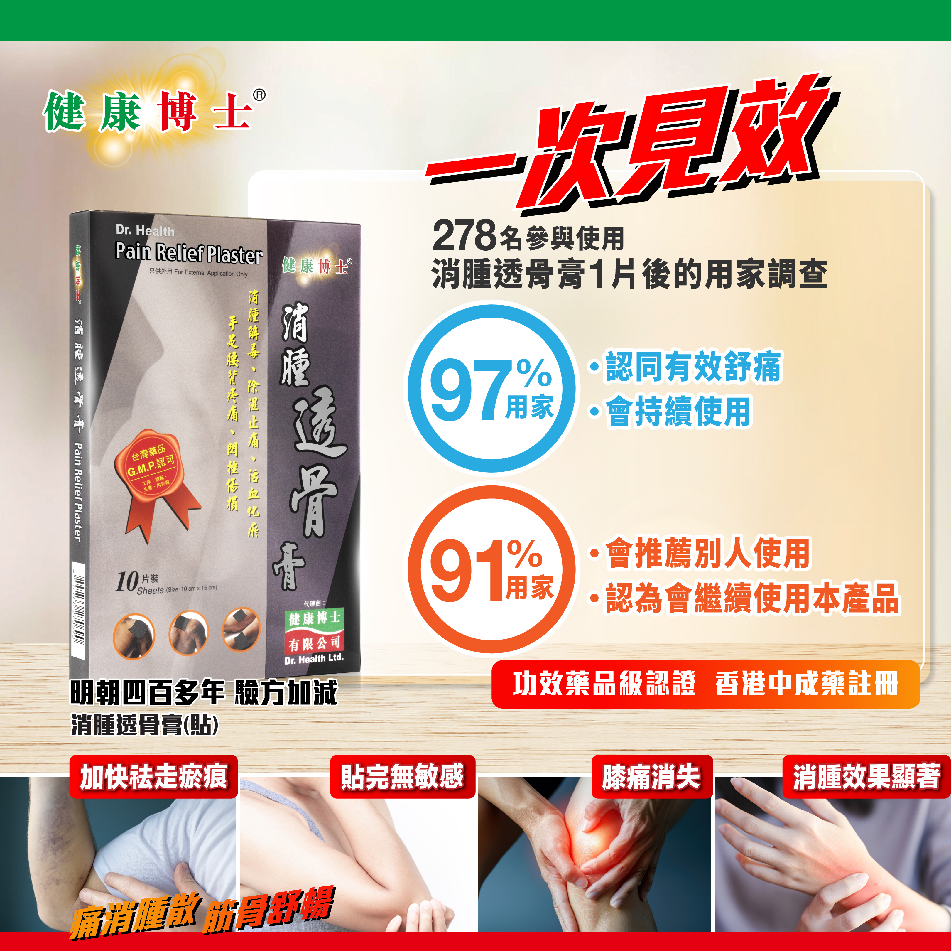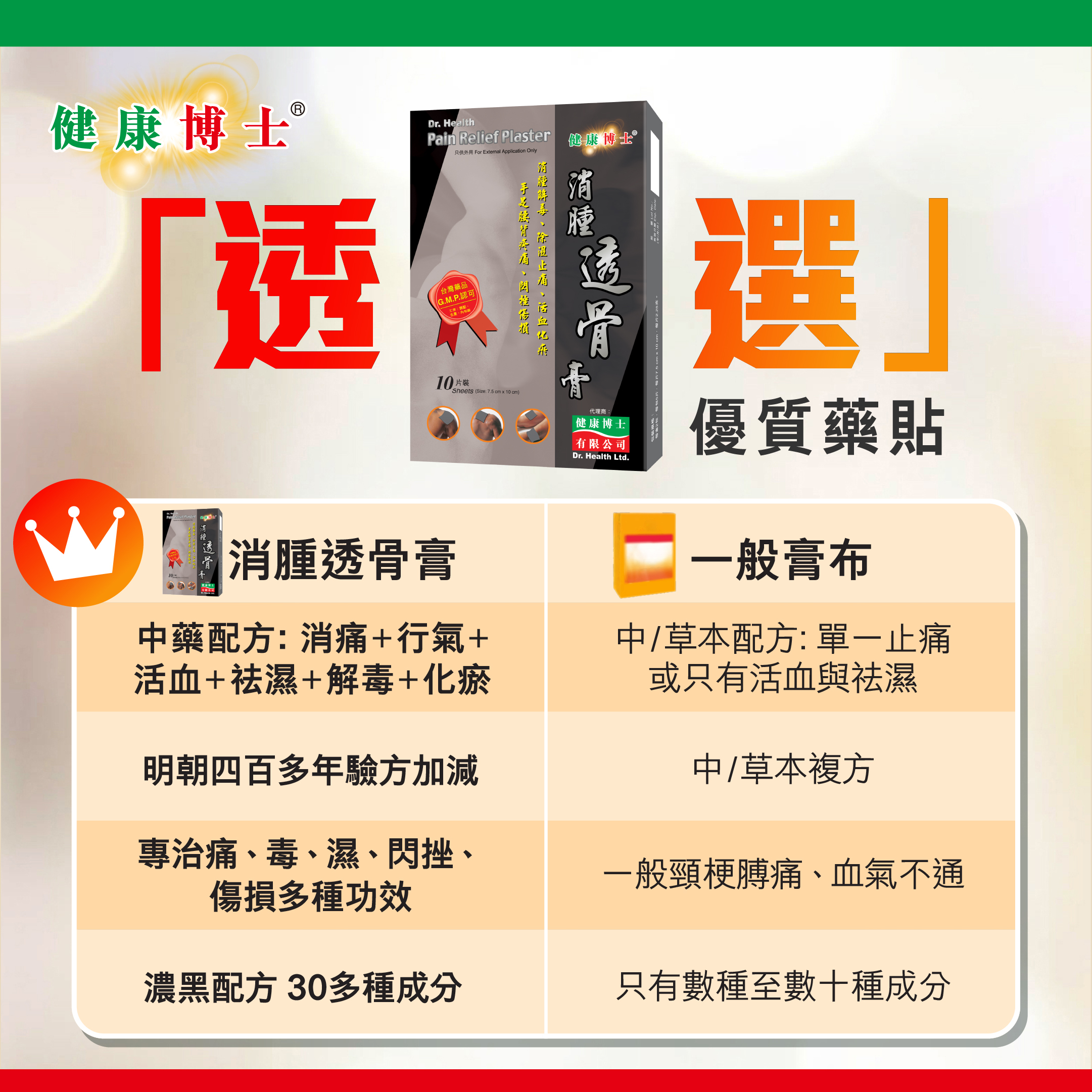 健康博士 - 消腫透骨膏(10片x 7.5厘米x10厘米)